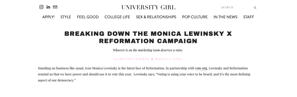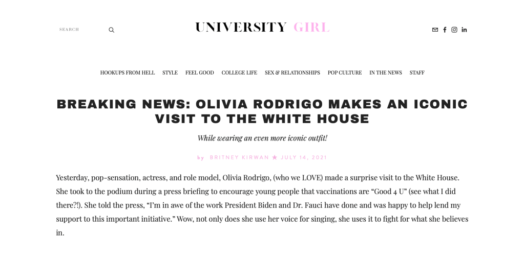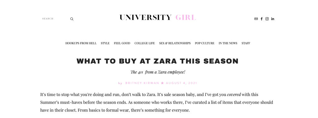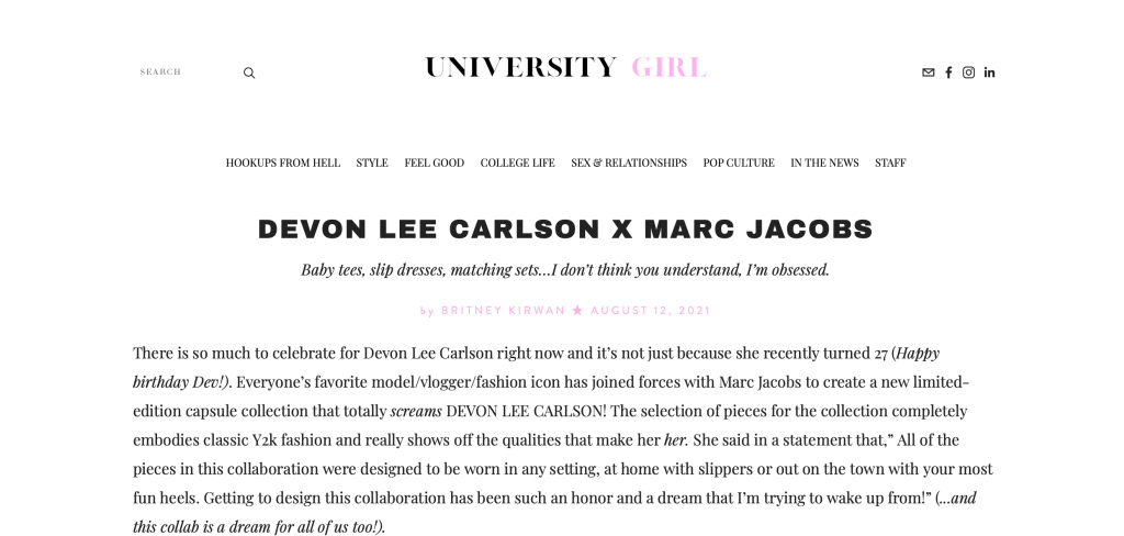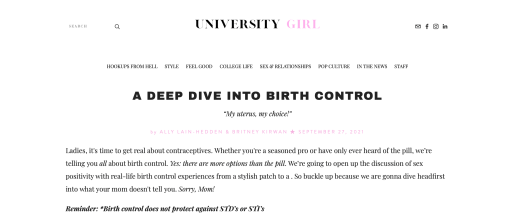These articles can also all be viewed at https://universitygirlsu.com